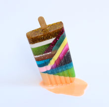 Resin looks like candy. It looks delicious and sweet. The shiny exterior has a wet, melting quality. Her Melting series relies on the childlike lure of sweet, sticky lollipops and popsicles to artificially instill intense desire. The colorful confections practically beg to be rescued and consumed. Bringing the kitsch, pop art theme to the 3D realm, her sculptures have a tangible, irresistible quality that delight the onlooker.