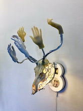 Media: Deer skull, TL/LED lights, electronic adapters, and aluminium.