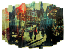 'Paris Carousel I' is a new original artwork from a collaboration between MK Semos and Hugo García Urrutia. Working primarily in recycled substrates and materials, Hugo and MK do what they do best, unifying image and form along with celebrating world capitals, in their current, and ongoing series, Wooden Postcards. The photographic artwork created by Semos and Garcia Urrutia in this collaborative style is a visual interpretation of an urban landscape, full of nostalgia, decay and charm, from New York City, London, Paris, and other cities around the globe, as places of inner experience as well as urban sprawl. Like a web slowly forming, these special hubs of the world act as melting pots, cradling vast amounts of cultures and ideas; Live organisms that become cultural icons themselves.